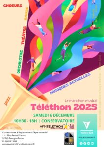 Téléthon 2025 - Marathon Artistique 10 h 30 min – 18 h 00 min6 Décembre 2025 More about {title} Voir le calendrier complet